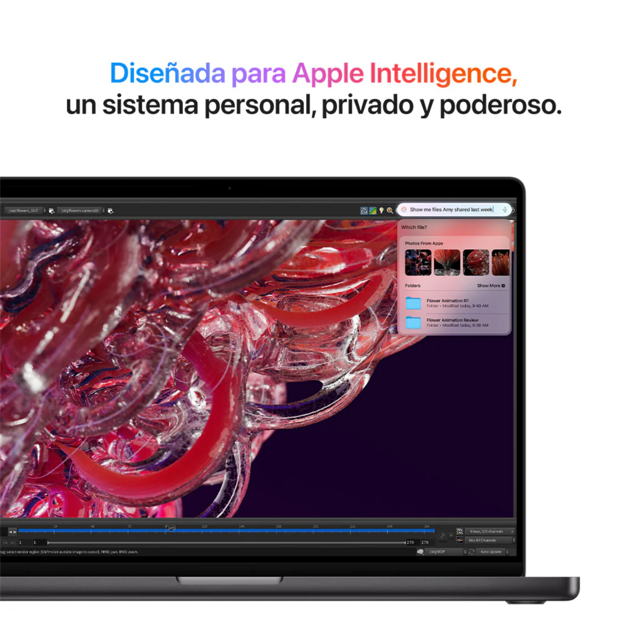 El nuevo MacBook Pro de 16 pulgadas con chip M4 Pro combina una potente CPU de 14 núcleos, GPU de 20 núcleos con ray tracing por hardware y un Neural Engine ultrarrápido de 16 núcleos. Gracias a su ancho de banda de memoria de 273 GB/s y su pantalla Liquid Retina XDR, es la herramienta definitiva para profesionales creativos, desarrolladores y usuarios exigentes que buscan el máximo rendimiento con una eficiencia sorprendente.